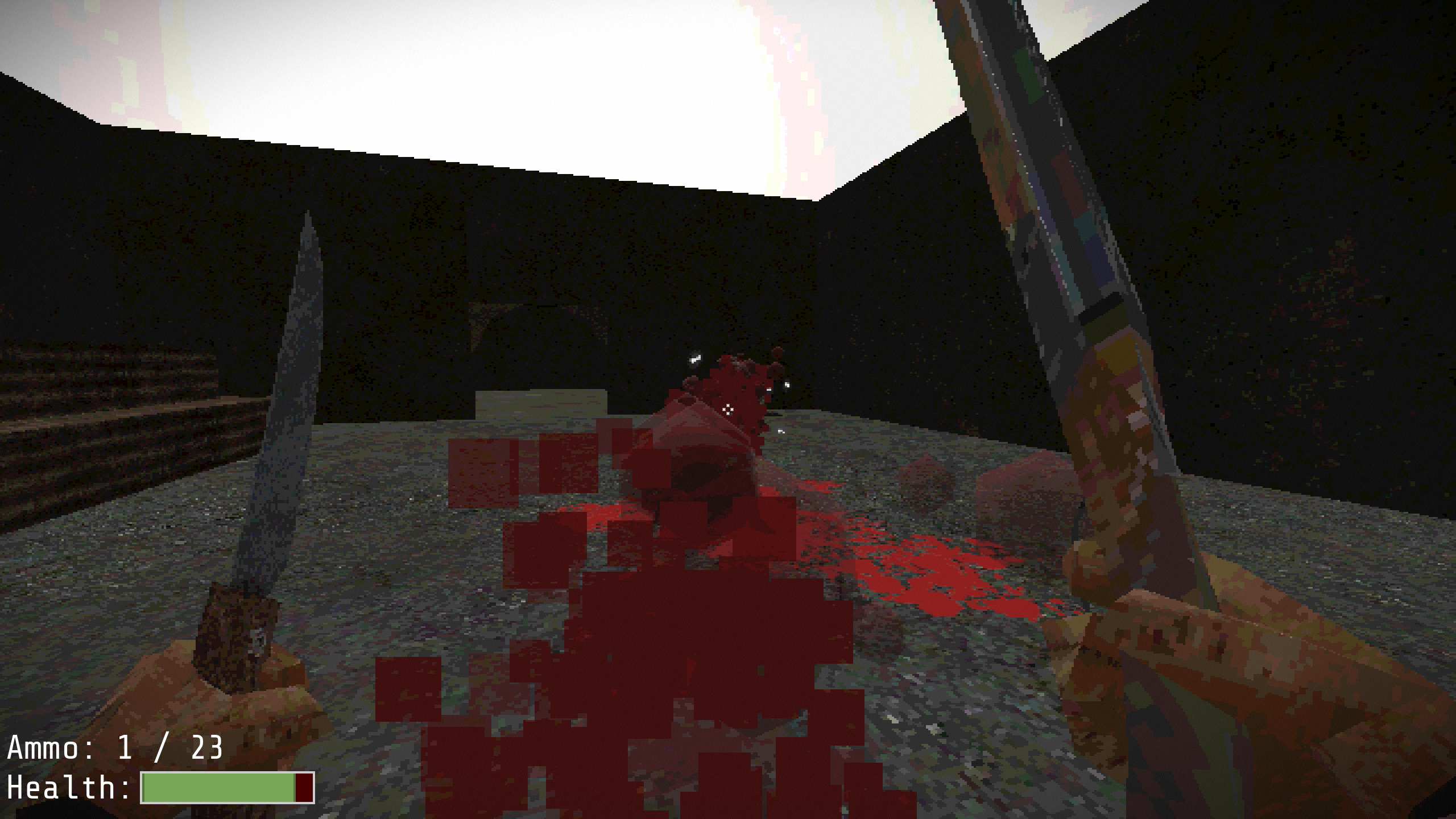 Currently, the game only has one level and three weapons.